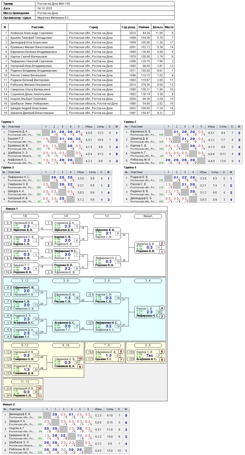 Итоги турнира Ростов-на-Дону MAX-150