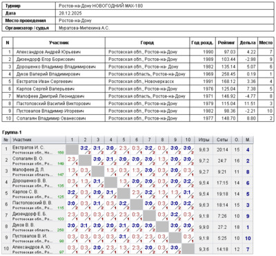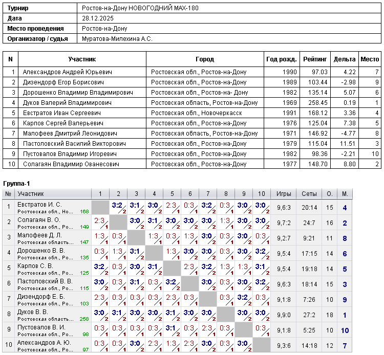 Итоги турнира Ростов-на-Дону MAX-180