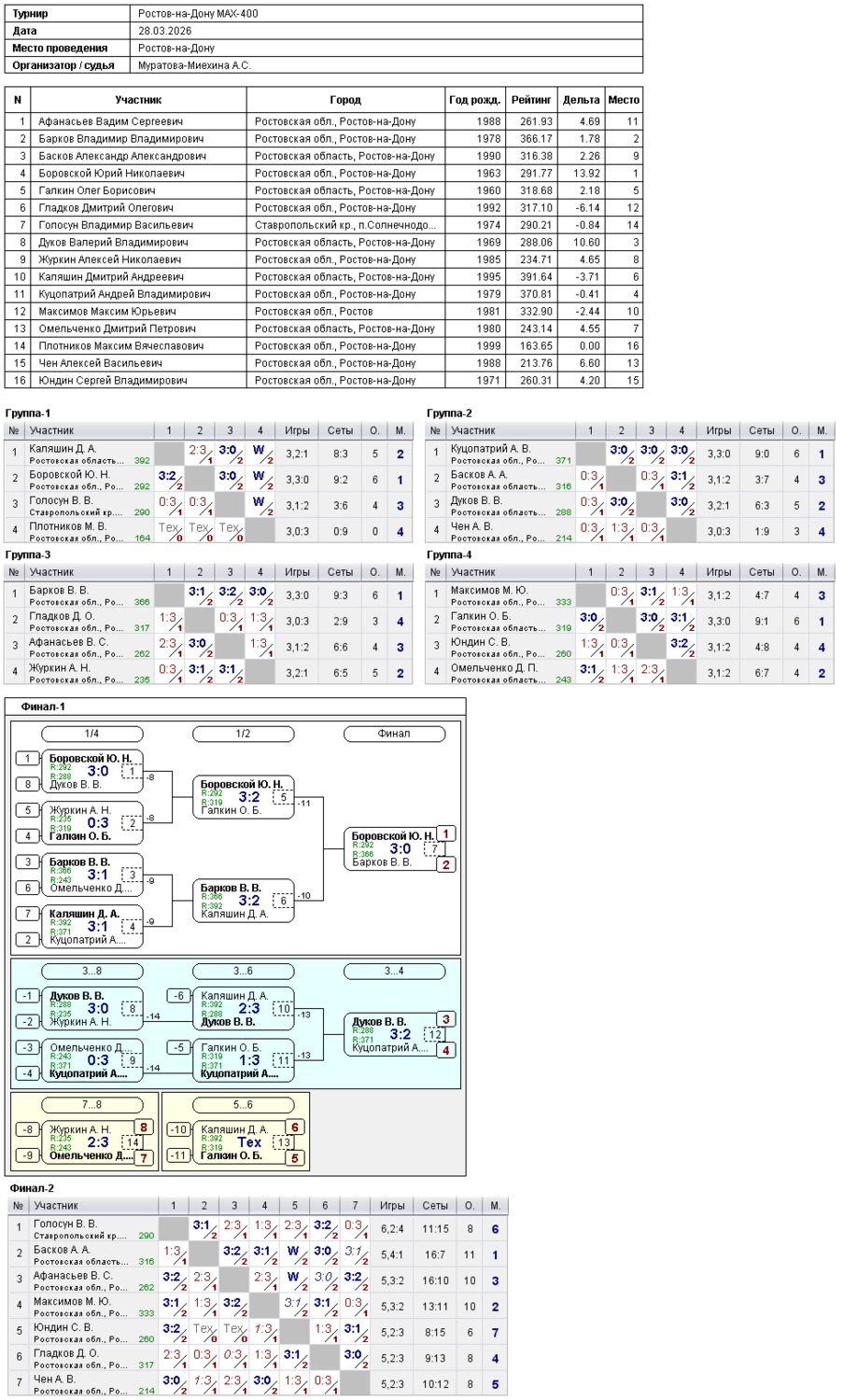 Итоги турнира Ростов-на-Дону MAX-400
